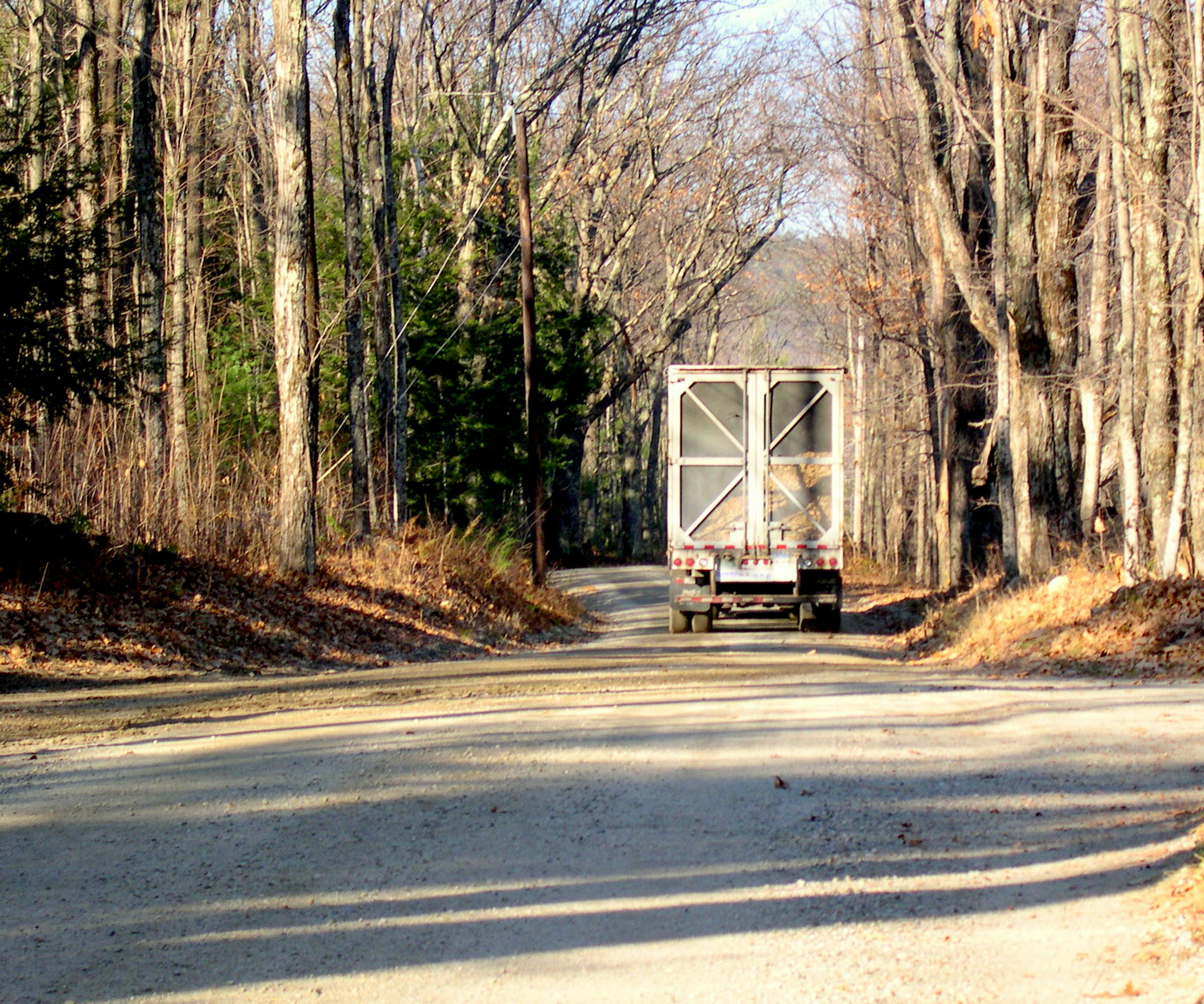 The thing is, last winter – all winter- the same thing was happening, but the trees were coming from another area. Supposedly these trucks will stop once the snow falls. They won’t be able to get to the area where the cutting is taking place.