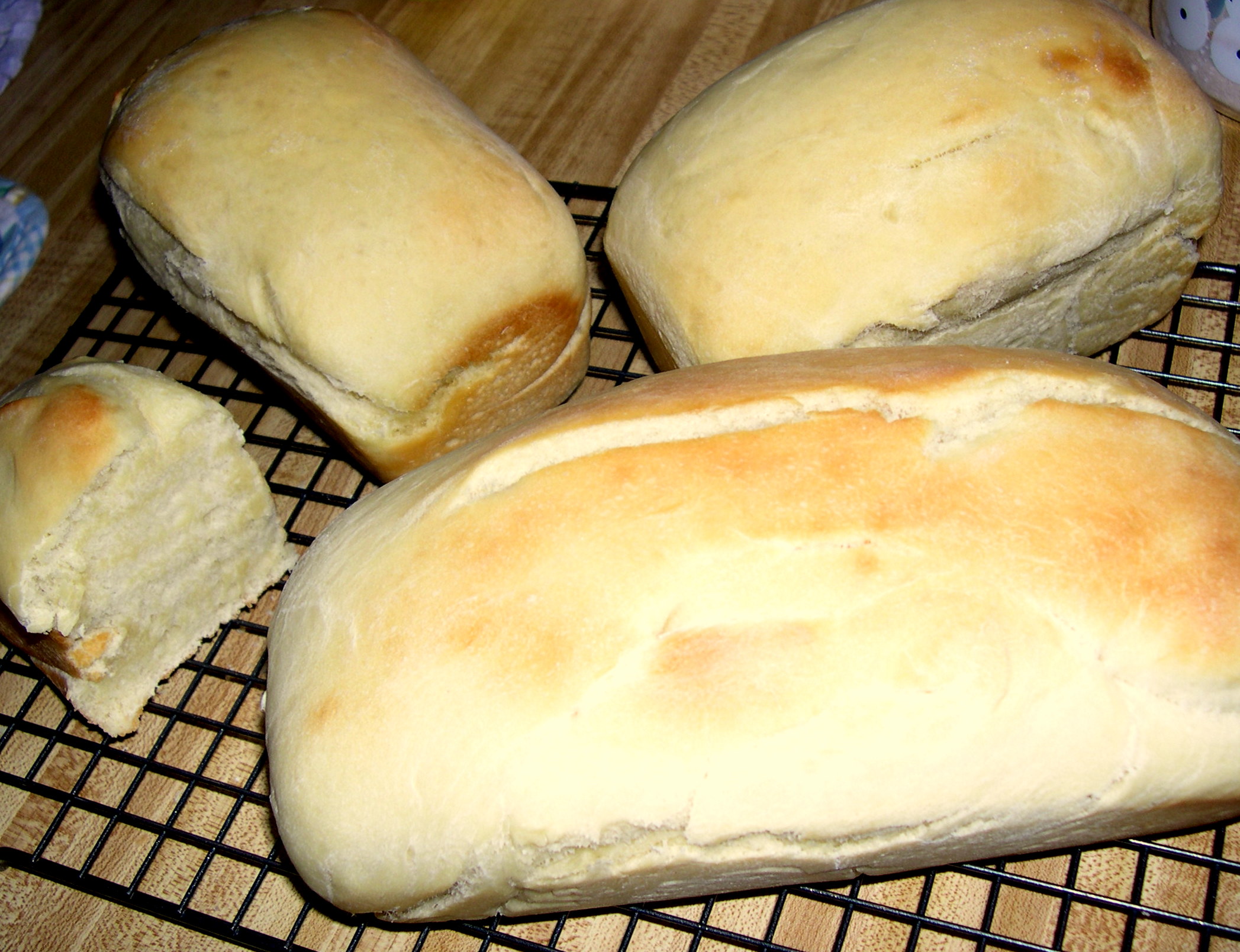 I got a few loaves – the small ones were edible but the large ones were doughy inside. I tried this recipe once more and still didn’t have much luck so I made Bread Pudding – which no one ate either! So I gave up on that recipe.