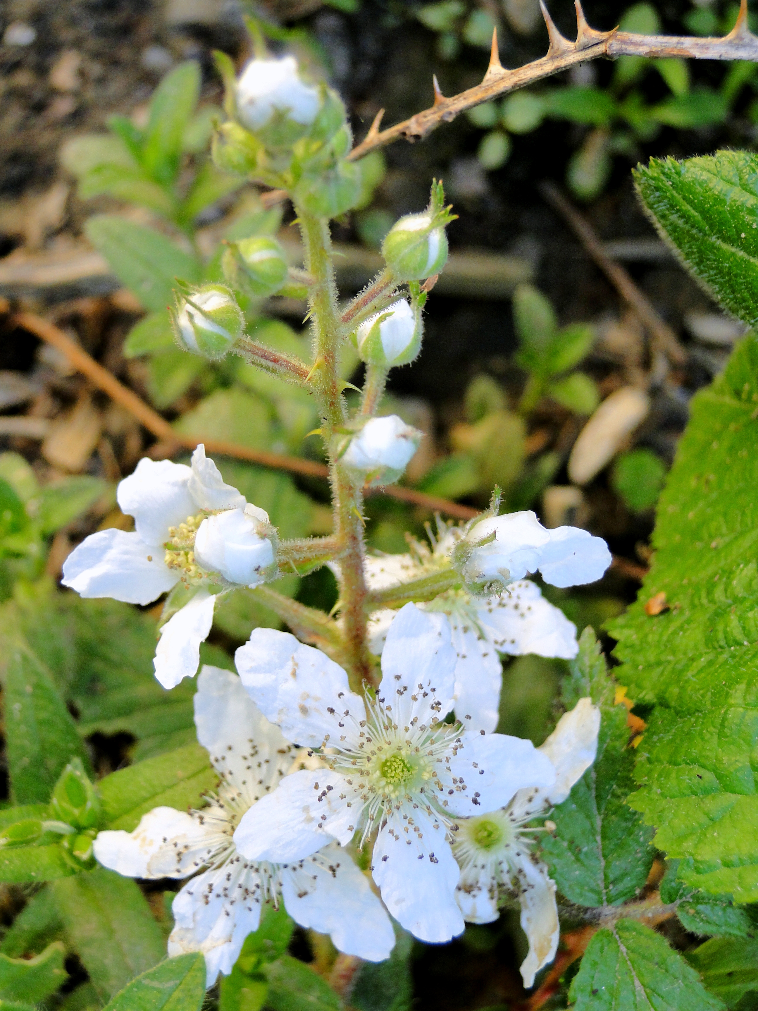Pretty little white flowers mean blackberries will be growing soon. I hate them.