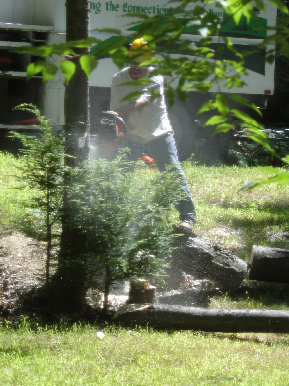So they were cut down and then cut into large sections which I will have my son cut smaller when he comes to visit in another week. I’ll let the wood dry and burn it in my wood stove, probably next year.