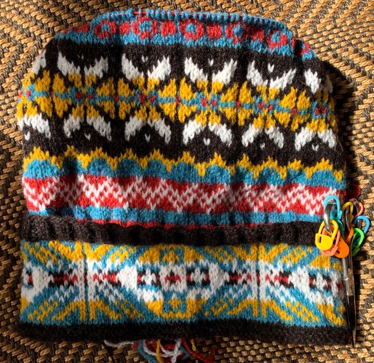 I did have fun playing with the colorwork, and I’m happy with the colors, just not the hat’s fit in general.
