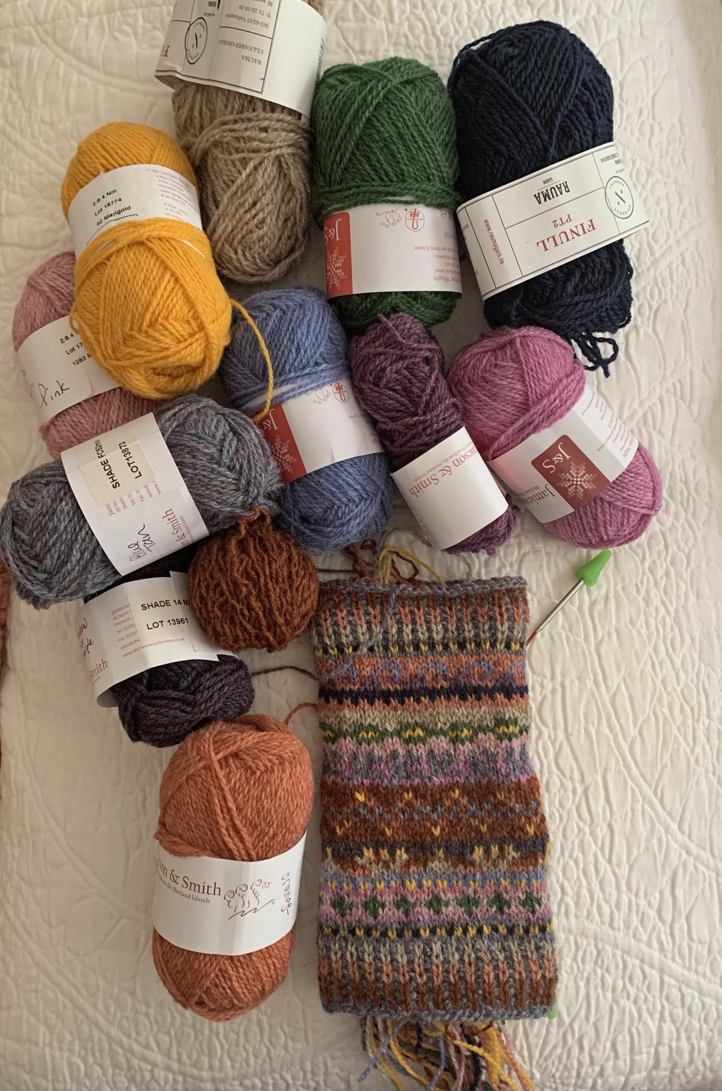 With quite a few projects unfinished at the present time, I really hate to begin something new, but Fair Isle pulls at me. There is great fun in combining colors and patterns to see how they turn out.