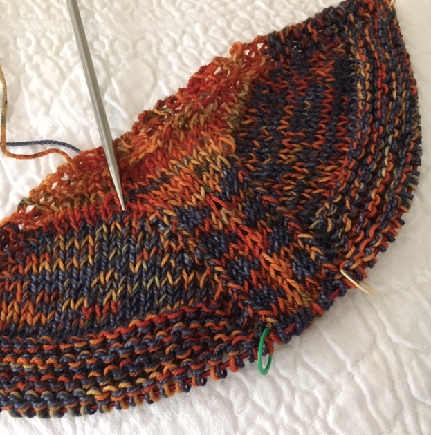 Many crescent and triangular shawls begin with the garter tab cast-on. Shawls are usually knit with long, circular needles. This cast-on begins the knitting from the top center where new rows will increasingly grow out at the edges. It had me baffled until I saw a good video tutorial.