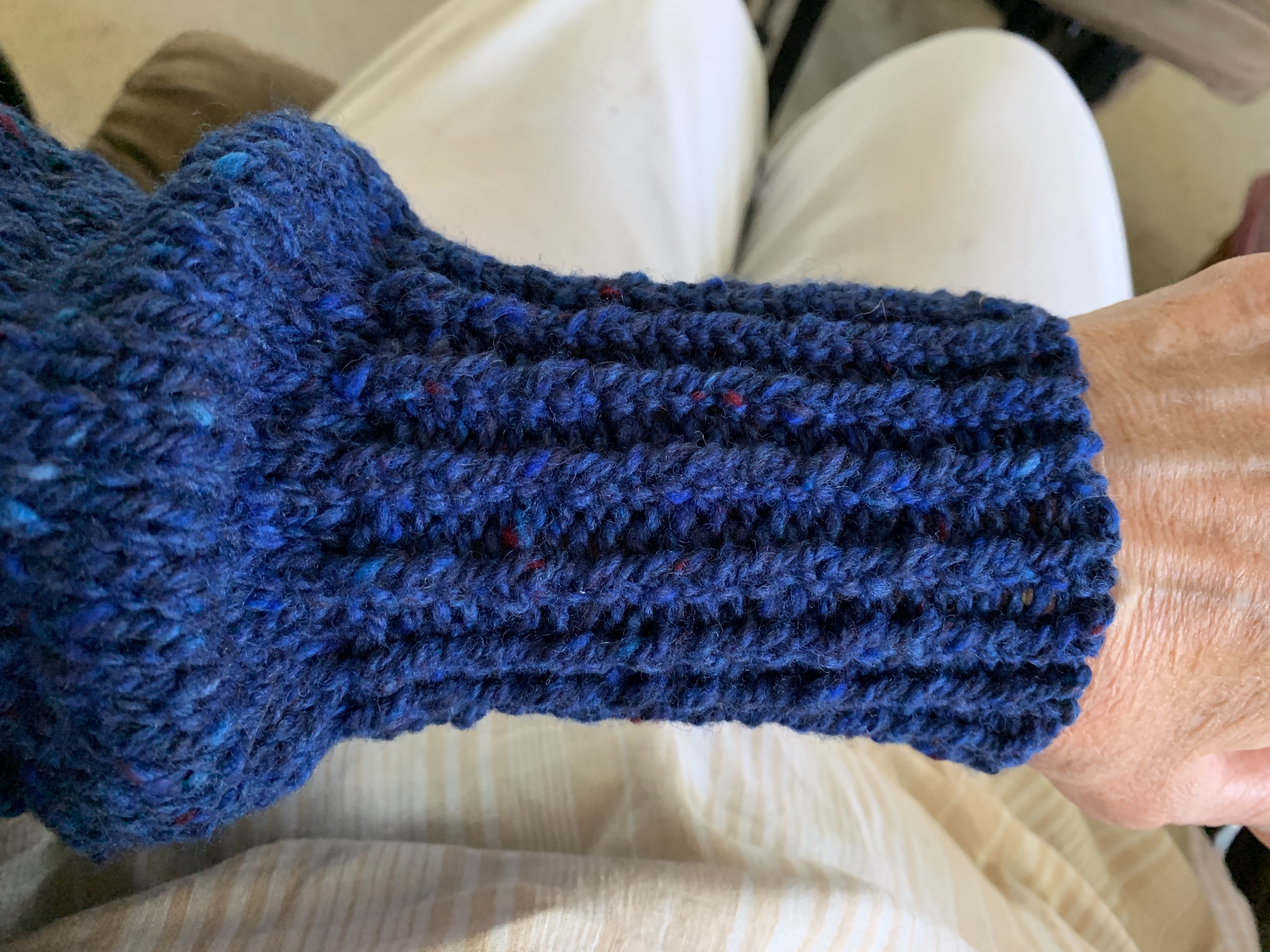 The original cuff from the pattern is just a garter stitch rib. I decreased to do a regular ribbed cuff. It ended up being a little tighter than I would like, but it’s okay. I decreased to 36 stitches and 40 may have been better.