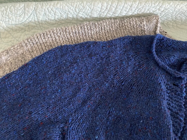 My first Cobblestone is a sweater I wear a lot. In fact I was wearing it the morning I began writing this post. Mainly, I love it because it’s a cardigan, which I prefer. Unfortunately, I’m not a great cardigan knitter because I hate picking up stitches and cardigans generally need a button band. It is picked up after the sweater is knit.