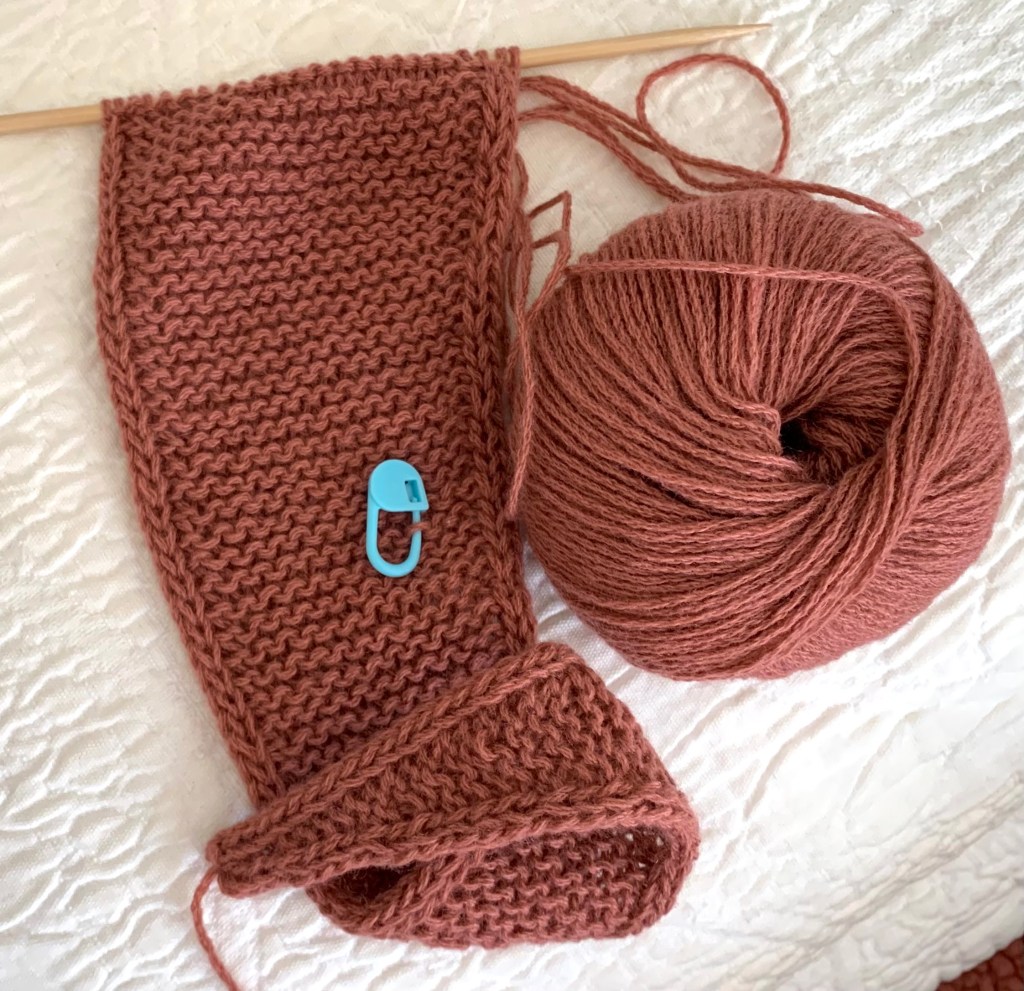 I’m going to start knitting and hope that my two balls of yarn will complete one, large size, longer, Sophie Scarf.