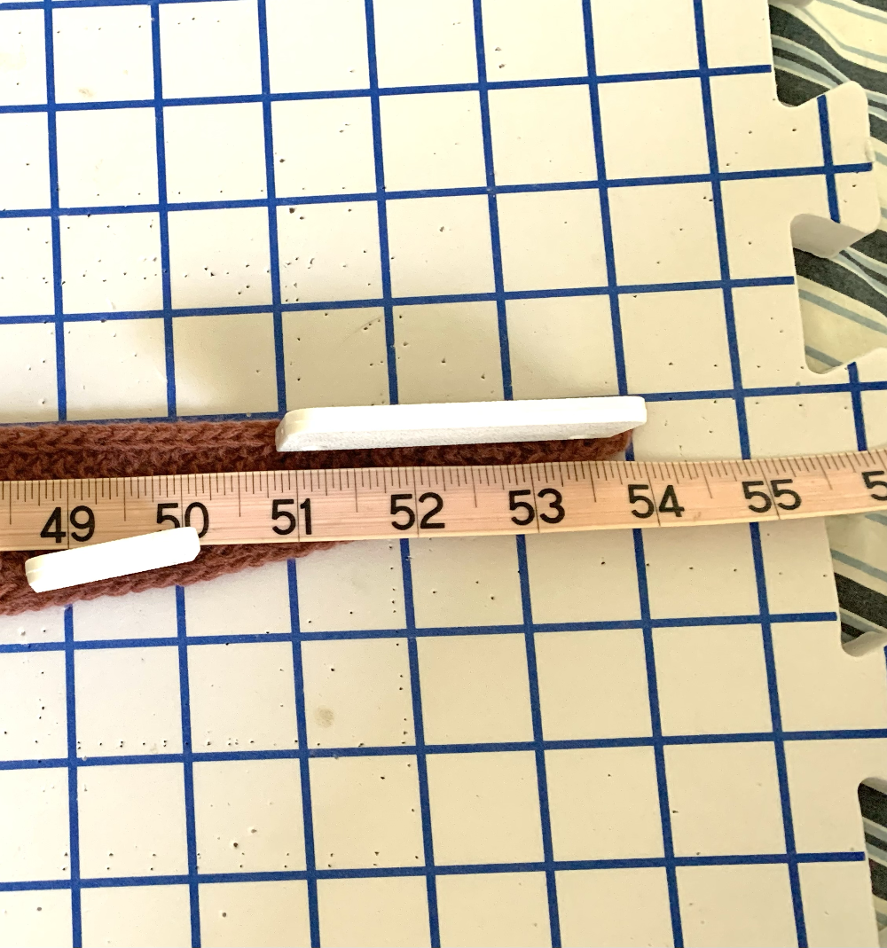 My finished Sophie scarf ended up being 54 inches long. I like to have the option to tie my scarf loosely. The length is perfect for me and it’s a very pretty color.
