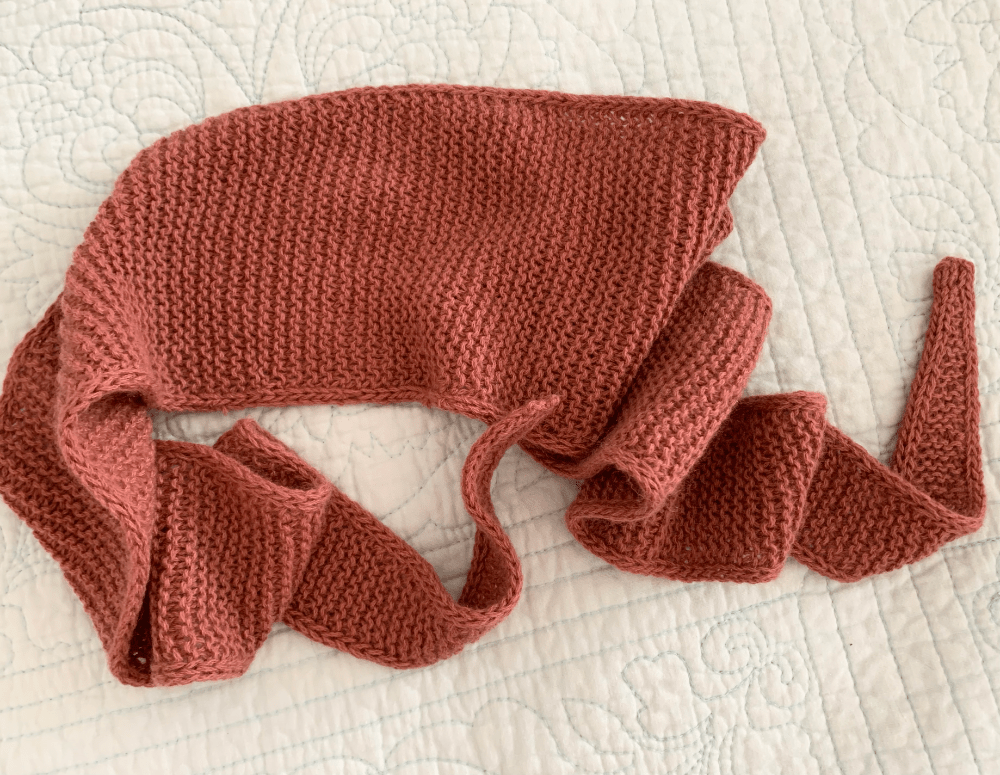 First, I had a knot that needed to be cut out. Knots are annoying, but they happen. Then, further along the first ball, I had an annoying split. The yarn strand was unraveling (see photo below). That had to be cut and reattached. This yarn does not splice and that means I have two tails, for each time I do this. The Sophie Scarf is double-sided, meaning that there is no good place (wrong side) to weave in the ends….!! I’m a bit perturbed.