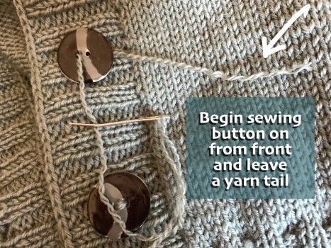 Previous Image Next Image button beginning Begin sewing the button on How to begin sewing a button onto a handmade sweater. Share this:TweetShare on TumblrMoreLike Loading...