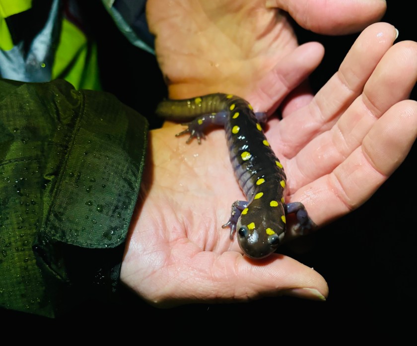 My daughter also volunteers and counts spotted salamanders with the Salamander Crossing Brigade. The volunteers go out on rainy nights and count the cool looking salamanders for science. Of course, my daughter dragged her old mum along for the fun! (Salamander photo in the slideshow below.)