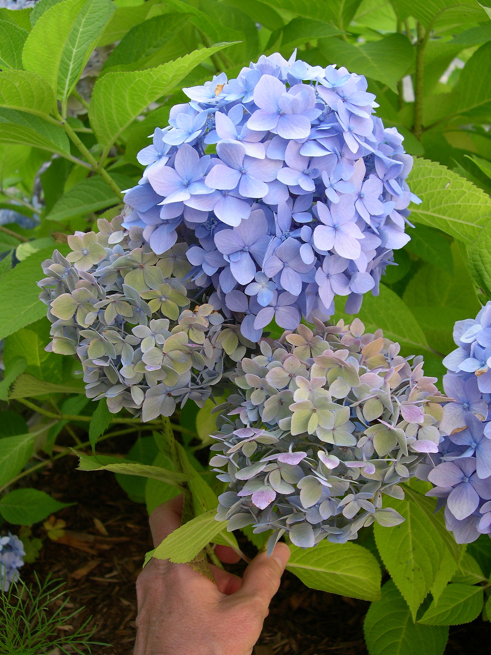 This year the flowers are very different looking. For one thing many of the blooms are smaller than last year and I don’t have any that turned really bright blue.