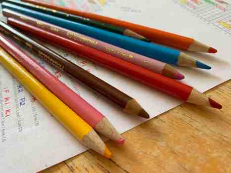 I use colored pencils to fill in the different cable patterns to easily reference while knitting this “Habitat” hat, by Jared Flood.