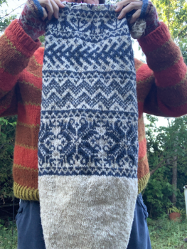 Previous Image Next Image Doublemassa hat Doublemassa Hat Holding the Doublemassa hat showing colorwork progress toward crown. Share this:TweetShare on TumblrMoreLike Loading...