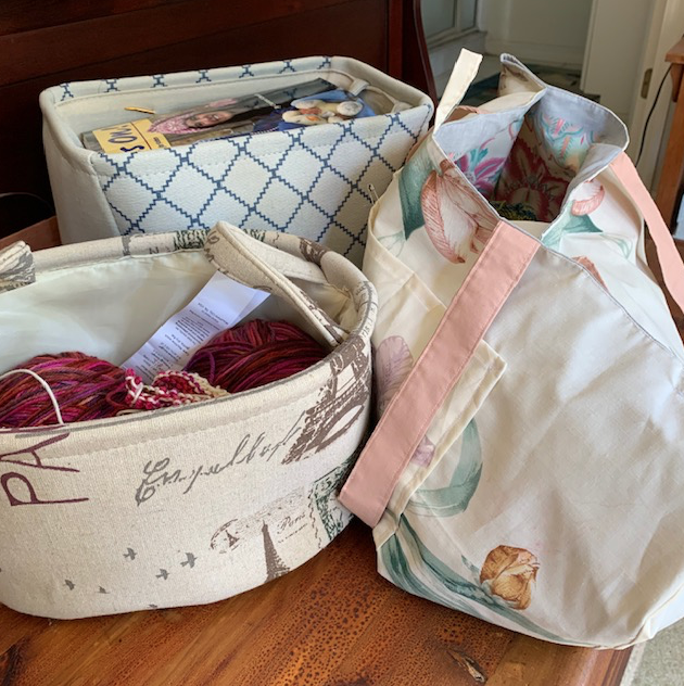Project bags are nice to have. I do have a few, but often my knitting projects are also housed in paper bags! Etsy is a good place to search for project bags, and you will be supporting a small business. At least one of my bags came from April Nine Designs at Etsy.