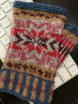 Previous Image Next Image Fair Isle mitts Mitt 1 finished! One mitt finished with one to go. Stranded colorwork in tan, blue, and shades of pink with gray wool Share this:TweetShare on TumblrMoreLike Loading...