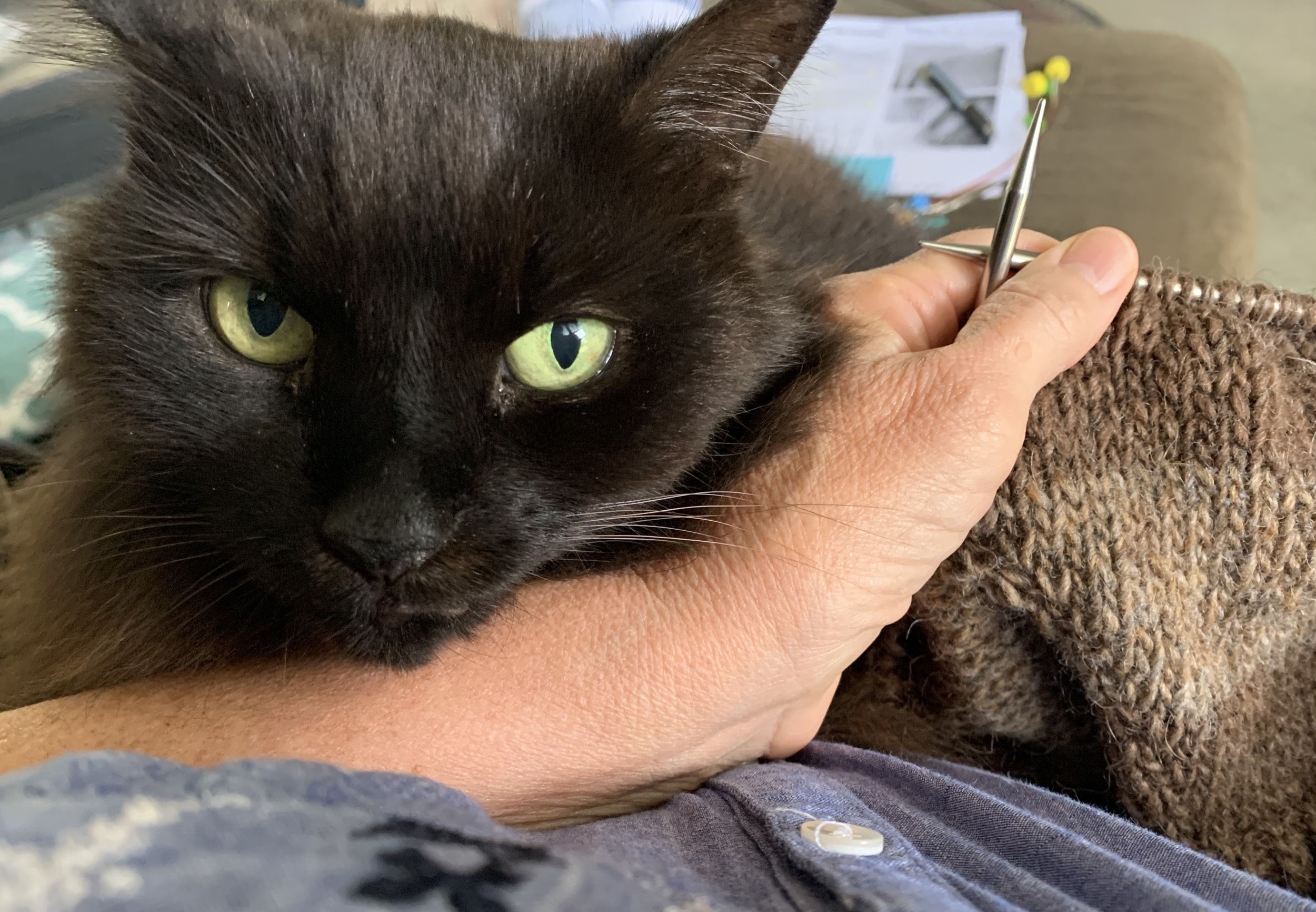 Previous Image Next Image Fontana Fontana in my lap while I try to knit the Warm Up Sweater. Share this:TweetShare on TumblrMoreLike Loading...