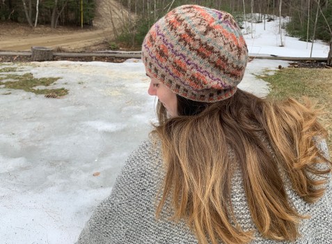 Previous Image Next Image kep My daughter models my Katies Kep knit in earth tones of tan, brown, orange, blue and purple. Share this:TweetShare on TumblrMoreLike Loading...