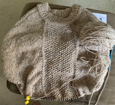Previous Image Next Image length Good length – 17 inches Seed stitch on poncho front with length good and ready to knit the ribbing around the bottom. Share this:TweetShare on TumblrMoreLike Loading...