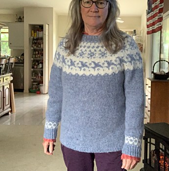 Previous Image Next Image me in sweater My Farfulglar sweater in blue and white Lettlopi yarn Share this:TweetShare on TumblrMoreLike Loading...