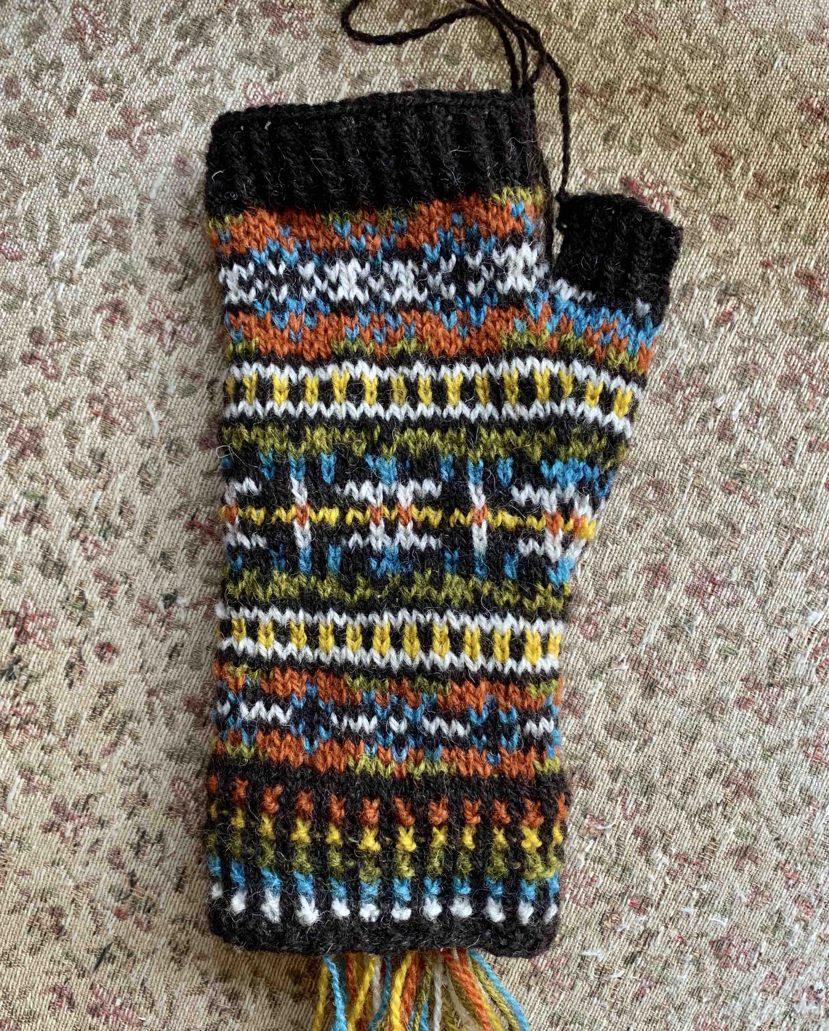 Previous Image Next Image mitt done Fair Isle fingerless mitt knitting the Stellar Parallax pattern with one mitt done and weaving in ends left to finish. Share this:TweetShare on TumblrMoreLike Loading...