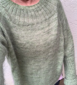Previous Image Next Image modeled My Calliope sweater is finished. Knit in Miss Babs and Filcolana yarn held together in pale green. Share this:TweetShare on TumblrMoreLike Loading...