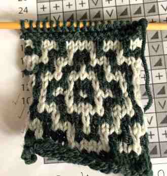 Previous Image Next Image mosaic front Mosaic knitting swatch in dark green and off-white using leftover Arbor yarn Share this:TweetShare on TumblrMoreLike Loading...