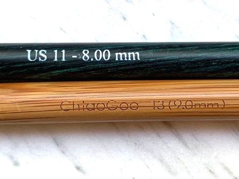 Previous Image Next Image needle size Knitting needles have the size imprinted on each needle. Share this:TweetShare on TumblrMoreLike Loading...