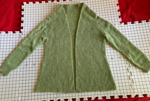 Previous Image Next Image Rebel drying Rebel shape on blocking mats Rebel cardigan knitting project complete and drying flat on blocking boards Share this:TweetShare on TumblrMoreLike Loading...