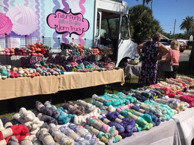 Previous Image Next Image Four Purls yarn truck tables Yarn in the sunshine, with more inside the truck Skeins of yarn on tables in the sun, for sale by Four Purls store which visited New Smyrna Beach in April Share this:TweetShare on TumblrMoreLike Loading...