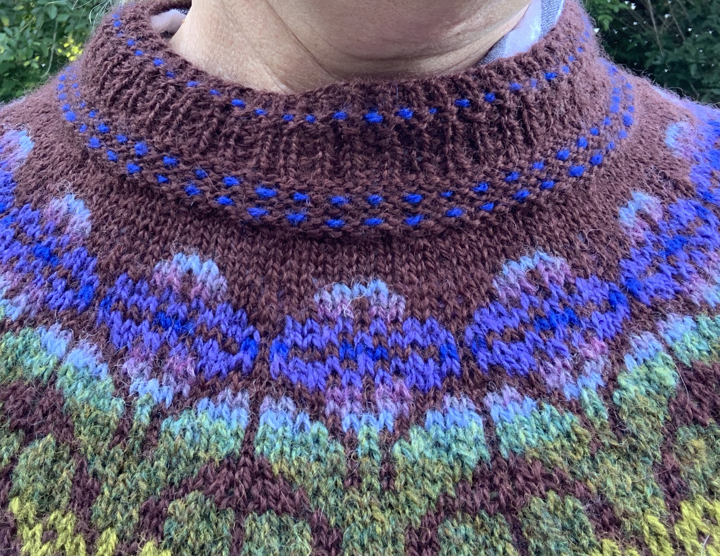 My color choices for the yoke are less than wonderful. It will be fine for me, but I would definitely have changed some things. I won’t rip this out, and consider it to be a bit bohemian and unique. I do love the examples (knit by others) where all one color, or close colors, were used for the colorwork.