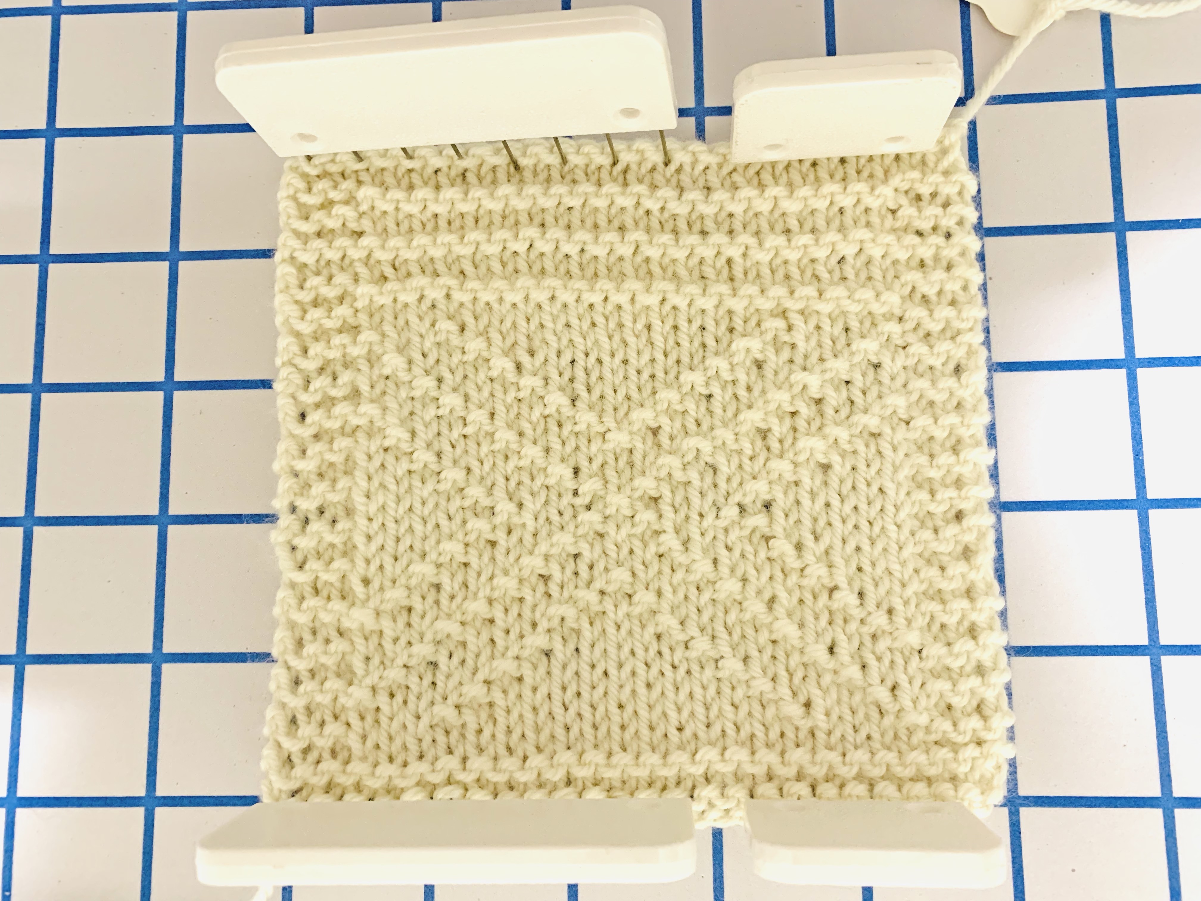 The swatch has been knit using some Kunlin stash, which is a DK weight. I wanted to see the textured pattern and check my gauge, which is good.