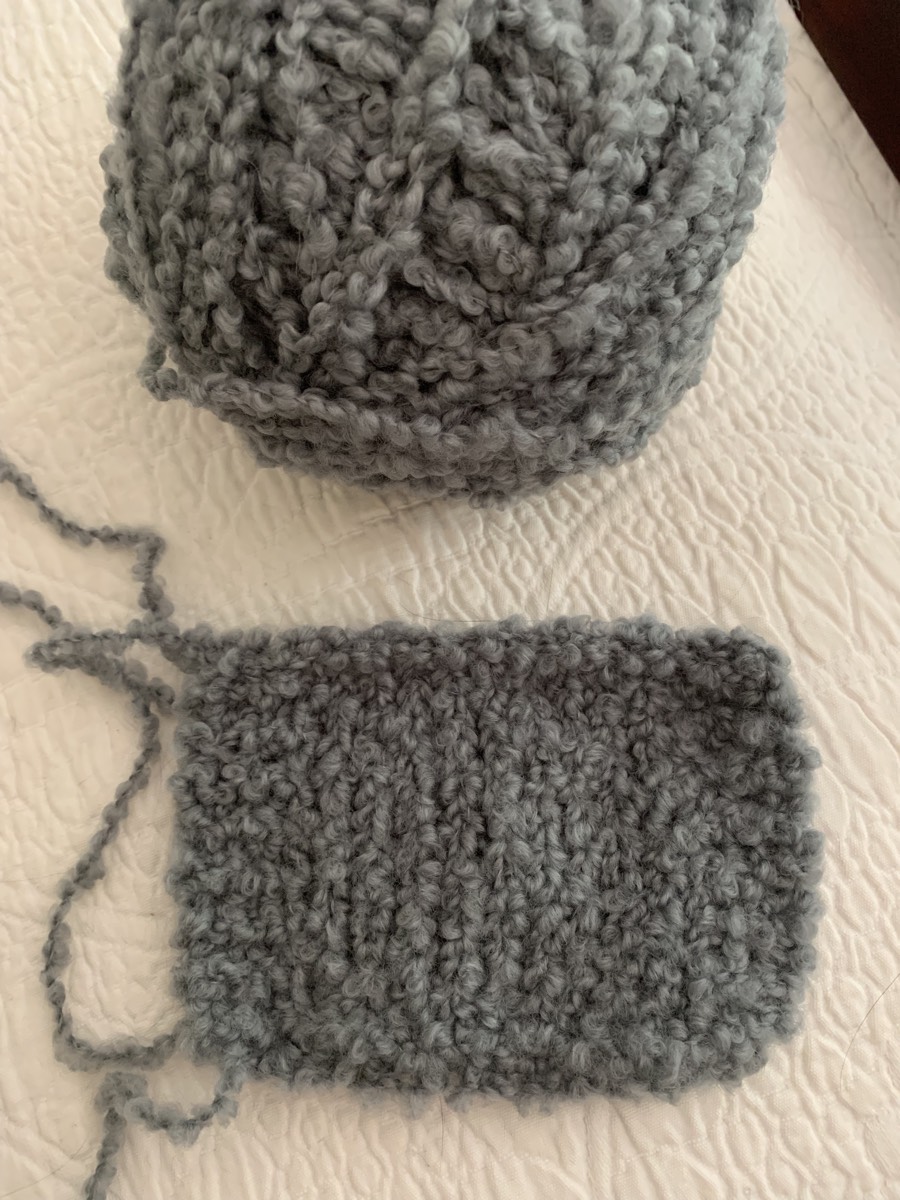 I had to wind my skeins, which I do by hand, over my knees. And I was a bit worried because of the nubby texture. It wound very easily, but there was a tag attached and I mistakenly cut the yarn at the tag- I should have cut the tag – not the yarn! So I ended up with one small ball and used it to knit my swatch.