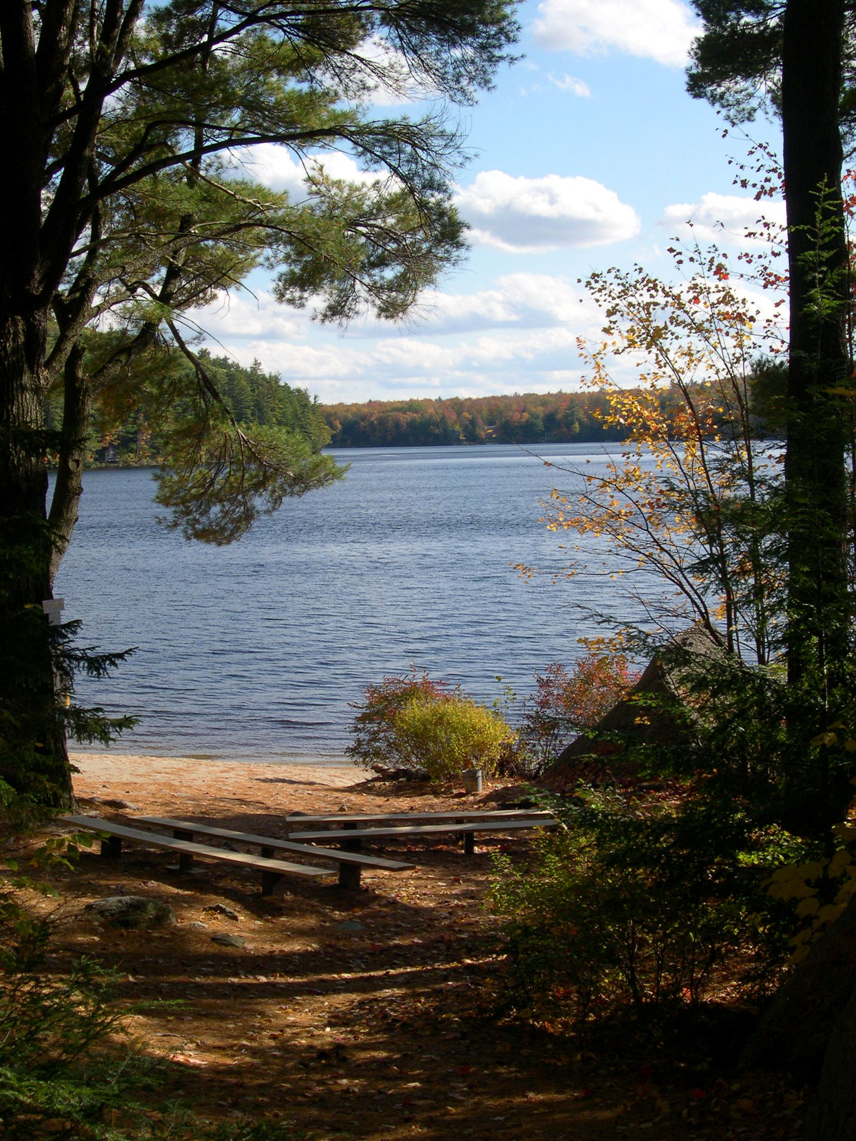 Camp Chenoa wraps around a large section of Gregg Lake and is located in a beautiful area of New Hampshire. At the other end of the lake is the Gregg Lake beach area and this is a photo from the summer of 2010. The camp is located in those woods on the right in this photo. Read more about the camp at their site Girl Scouts of the Green and White Mountains.