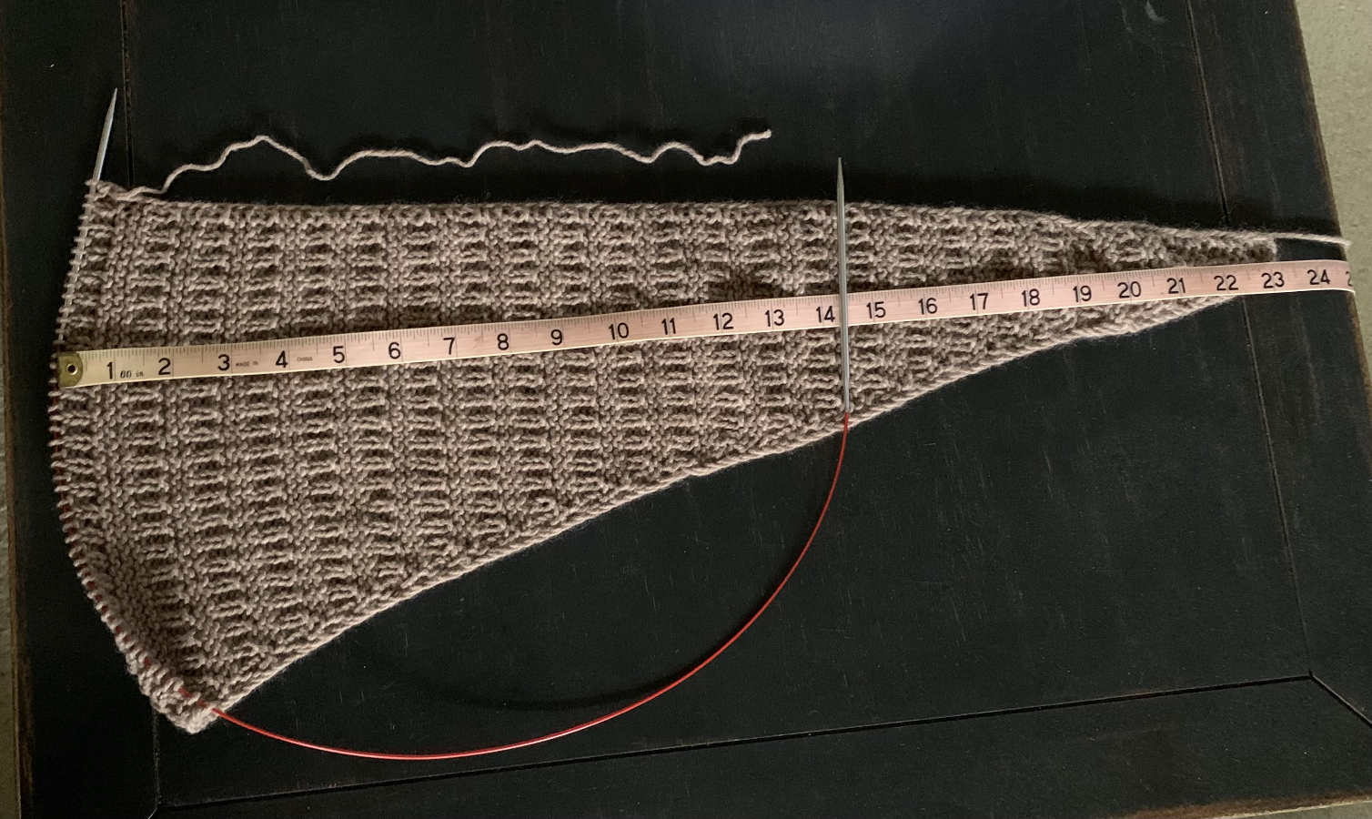 I did need to skip some of the middle rows of knitting in order to head to the decreases. With any luck, I will just make it to the bind off.