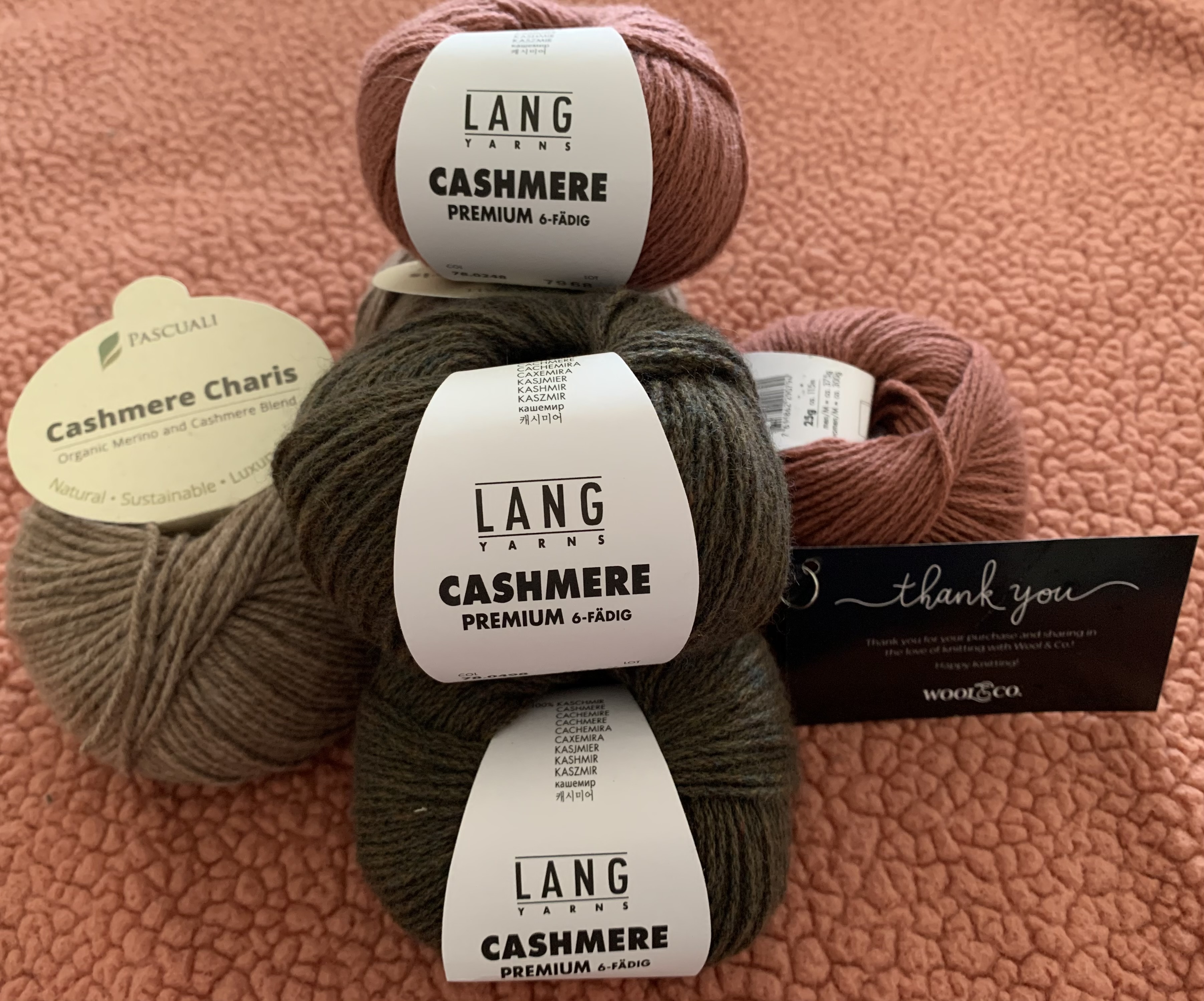 My cashmere yarn purchase with Lang and Pascuali balls.