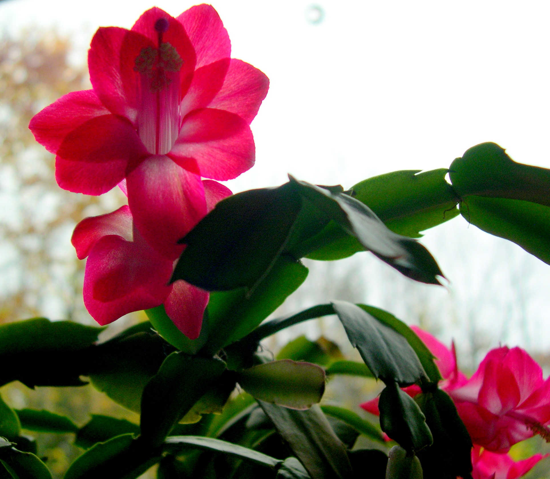 I don’t think I’ve ever had a Christmas Cactus that bloomed at Christmas. The flowers on this one are already beginning to die – the first of November. I put one (I have 2) outside under a tree this summer and it bloomed in summer! Not many flowers, just a couple.