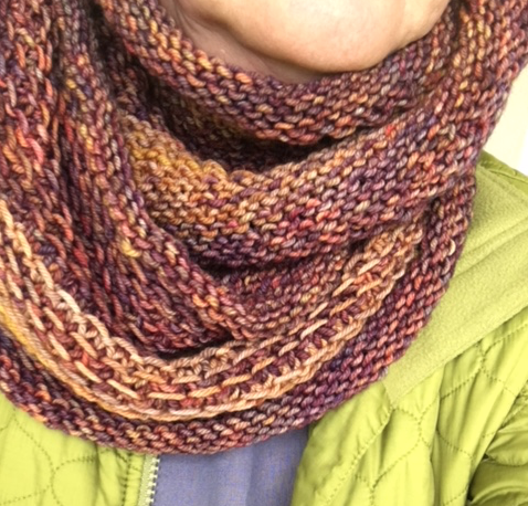 This is my third knitting of the Honey Cowl pattern and this time I chose a lighter weight yarn. The free pattern is simple enough for a beginner to knit and gives a lovely textured project.