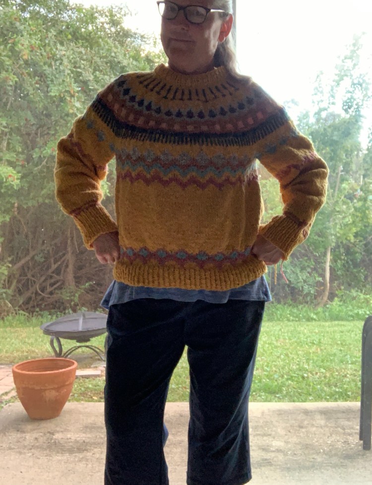 I usually have good luck knitting Jennifer Steingass patterns. Her Ravelry pattern page is Knit.Love.Wool. and the link goes there. The previous sweaters of hers, that I have knit, have fit me pretty well. Her patterns are well-written and easy to follow. Most are colorwork patterns with stranded work done on yokes and sometimes sleeves.