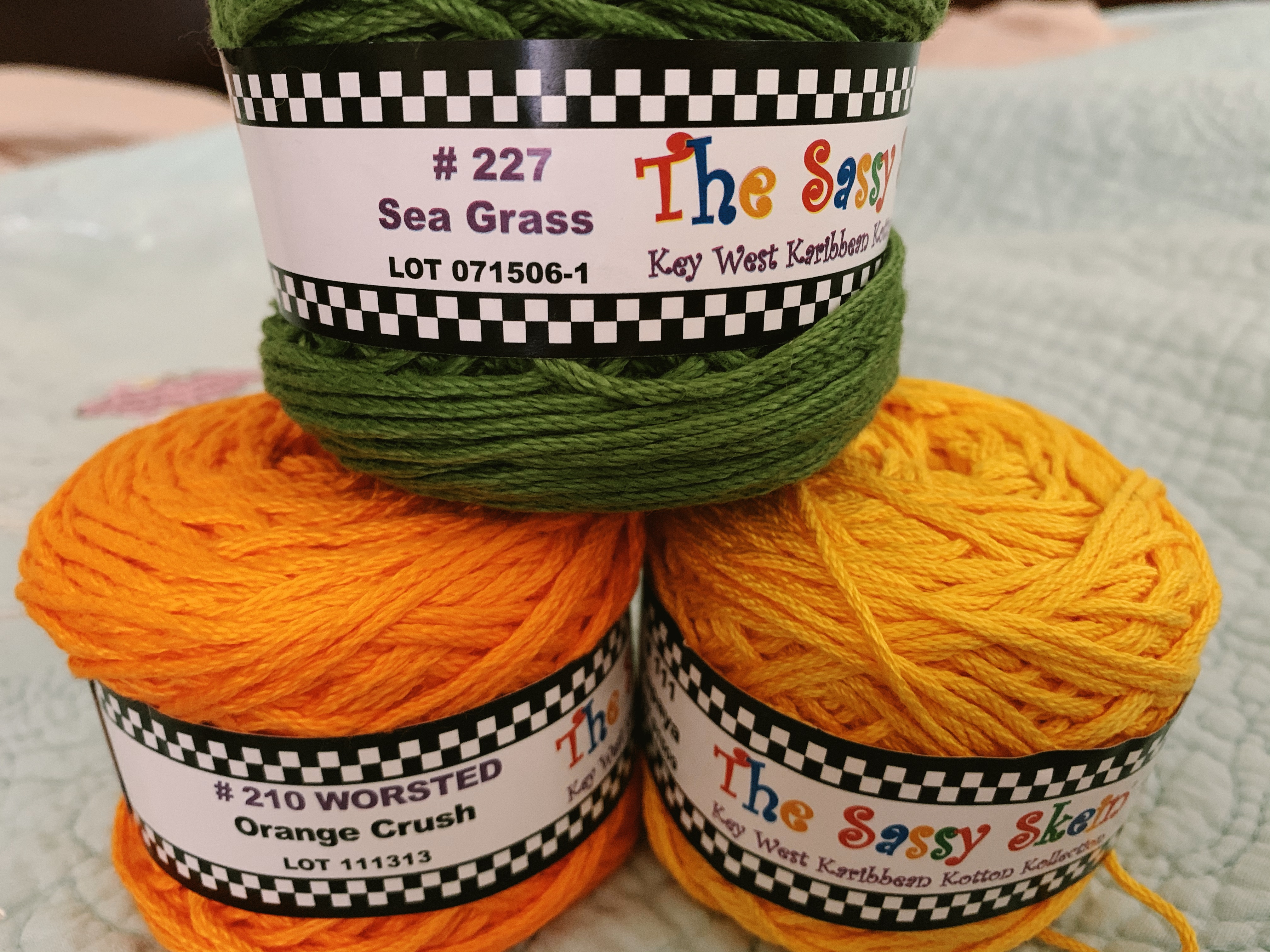 One day while browsing the Four Purls site, I saw The Sassy Skein cakes of colorful cotton – Key West Karibbean Kotton. I bought a few skeins of their bright tropical colors, and ended up loving this yarn!