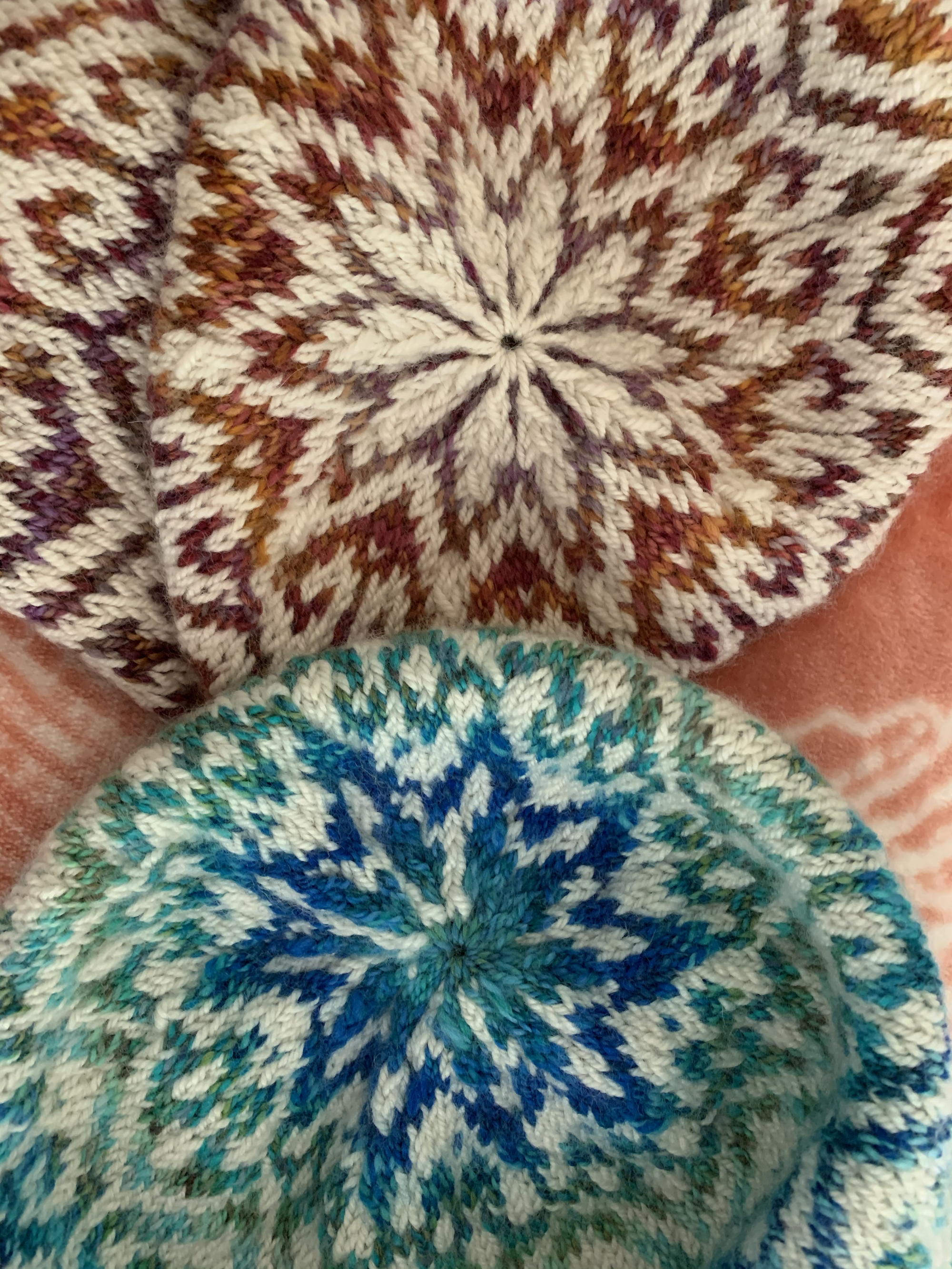 At some point I ordered some un-dyed Kunlun yarn. It was probably part of a sale, because I had no plans for it. Eventually, I used it when I made two hats for my daughter and my son’s girlfriend. The white in these hats is the Kunlun yarn (it is combined with some variegated handspun I had purchased). They are the softest hats I’ve ever made. My daughter wears hers all the time.