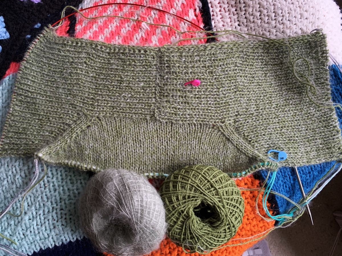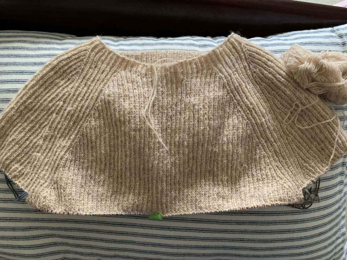 I’ll have to add a few increases as I begin the body because my counts were off. The yoke was getting long and I skipped a few rounds before the separation. I have 115 for back and front. It should be 123 for my size. I need to add 8 stitches to each – front and back. I’m not worried about the missing 2 stitches for each sleeve.