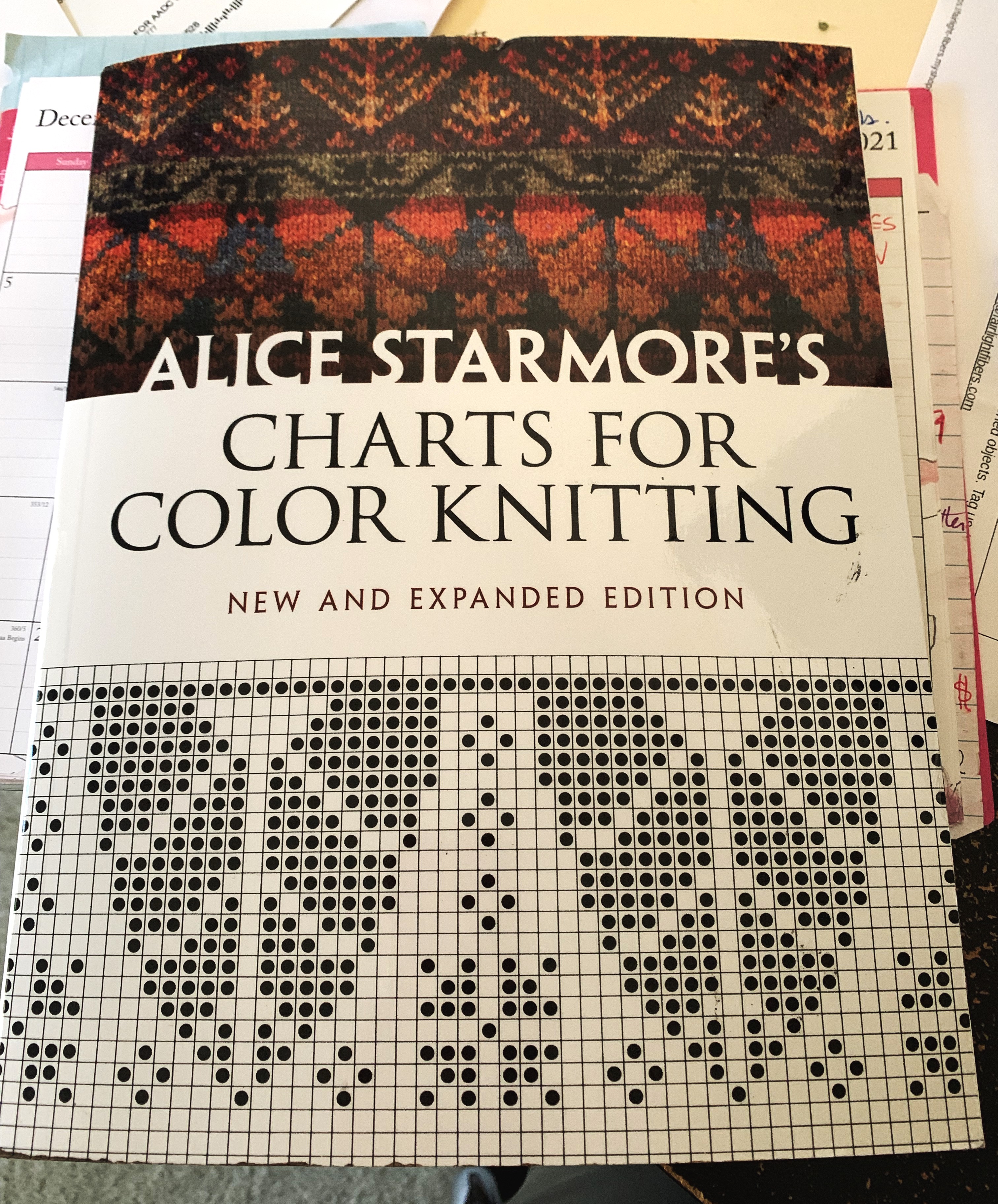 Finally, I settled on a pattern, which was taken from Alice Starmore’s “Charts for Color Knitting” book (This is an affiliate link to Amazon). I will knit the floral pattern for the length of the body and the top will be solid green.