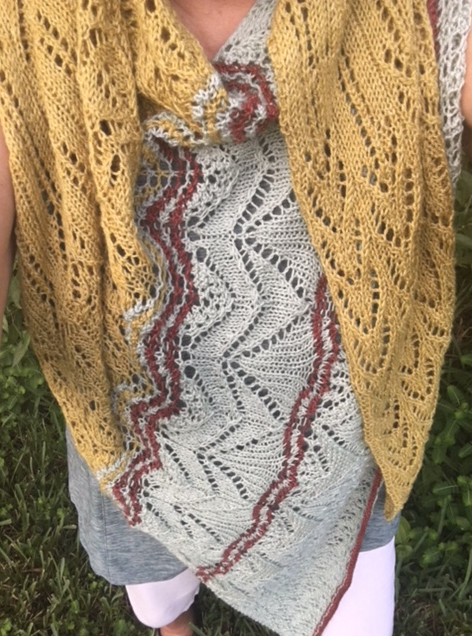 All of the shawls pictured here (except for Vine Pops) were very simple to knit. Vine Pops was a MKAL (mystery knit-along) and I can’t even believe I stuck it out and finished. I was new to knitting, and the shawl had lots of lace. I’ve since decided that I do not like KALs.