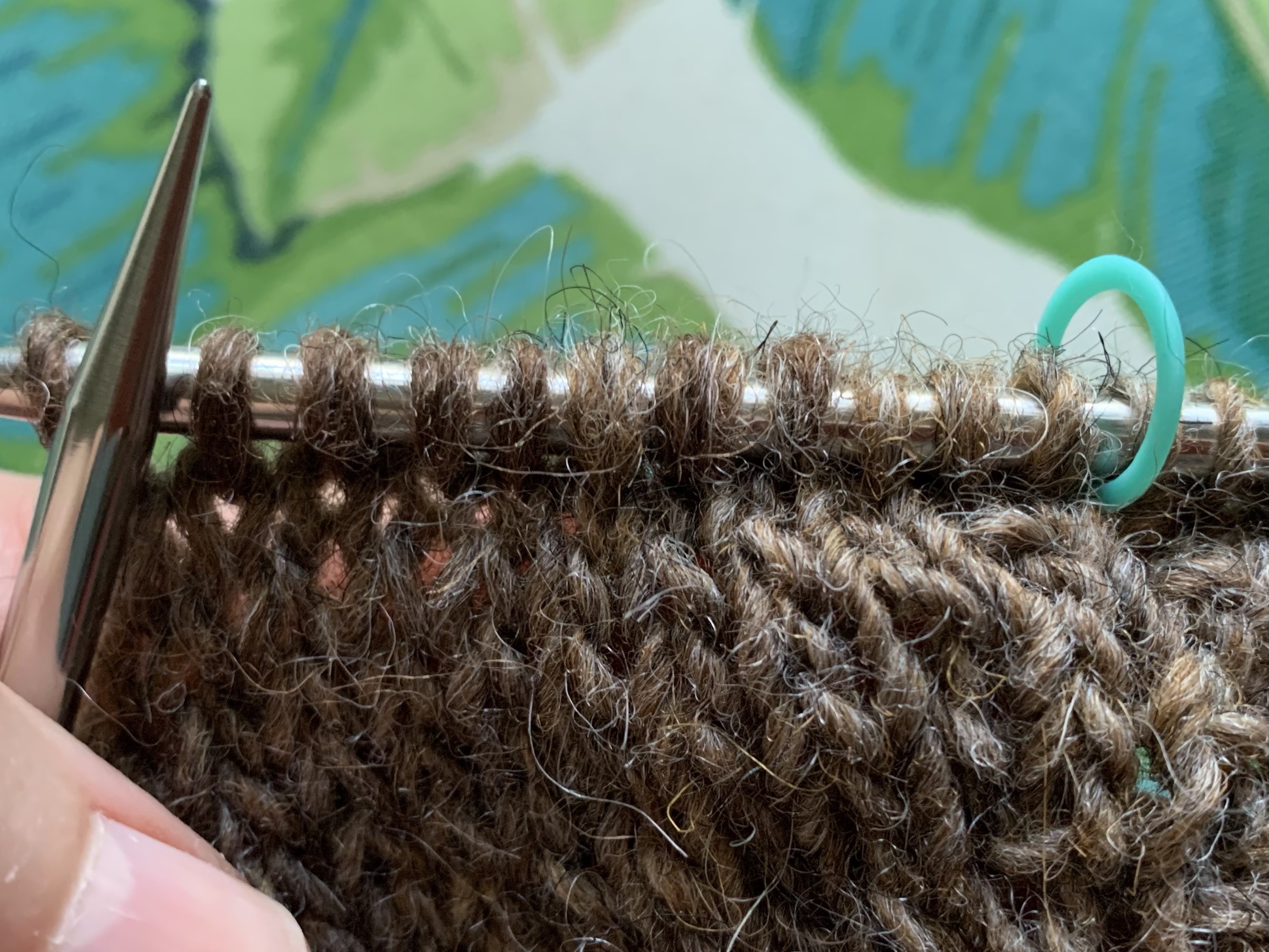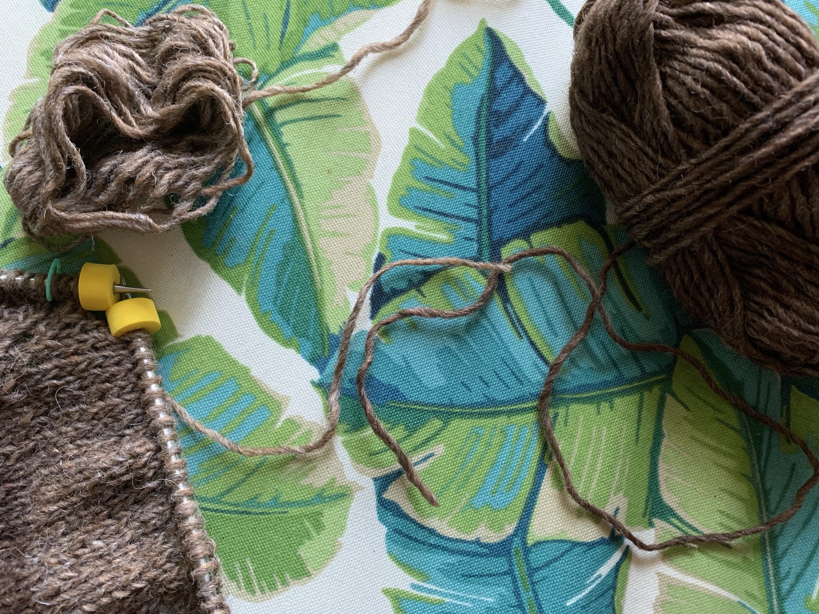 The Uradale yarn is fickle. The darker brown Moorit was quite thin compared to the Jamieson & Smith. When I added the Uradale Aess, which is beige, it is thicker. In general the yarn seems to deviate, sometimes becoming very thin.