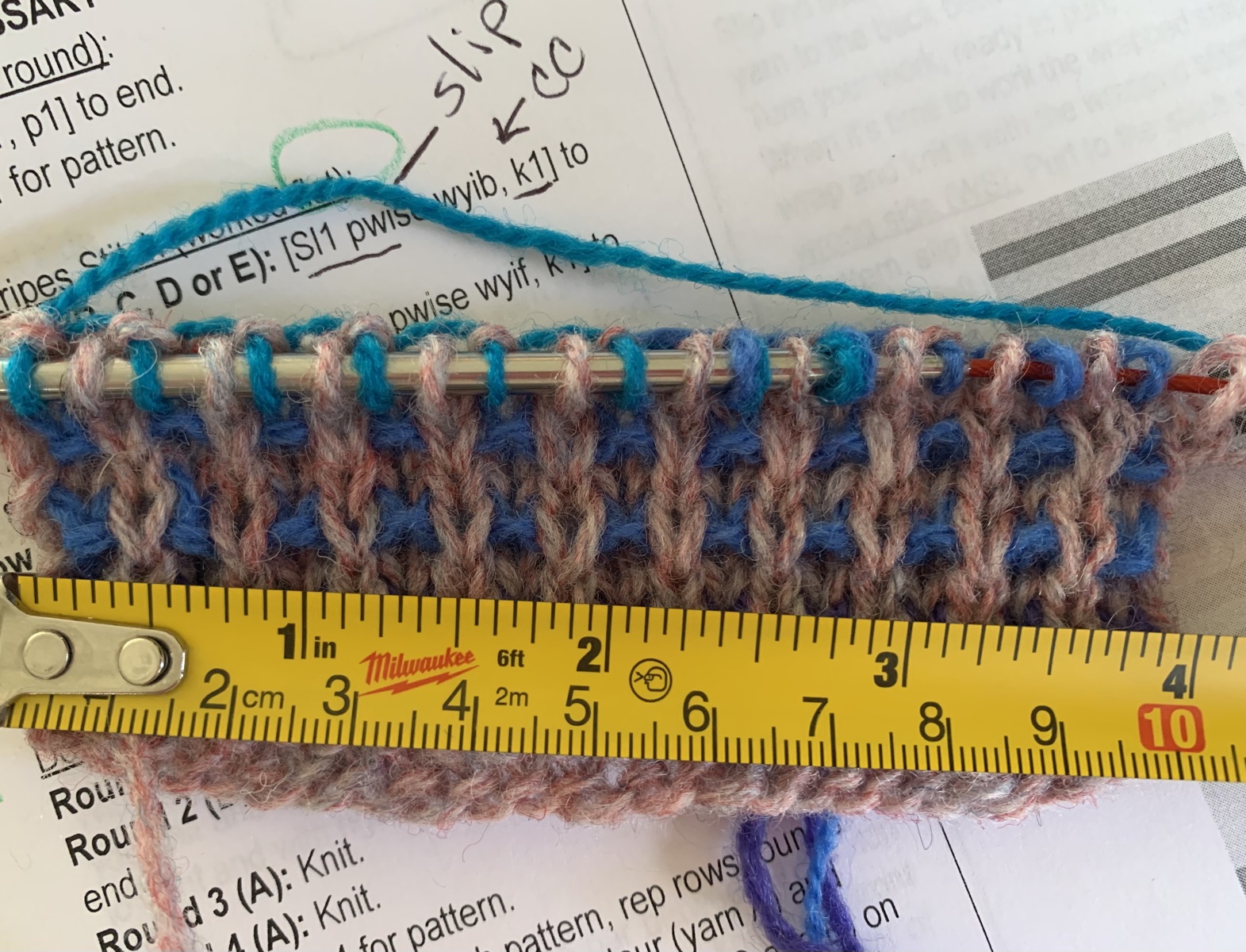 After looking over reviews, at Ravelry, written by previous knitters of this vest pattern, I see that many finished projects have turned out to be too tight. Even when a seemingly larger size was chosen, the vest seems to end up with a smaller circumference than planned. Maybe knitters did not do a swatch in the round???