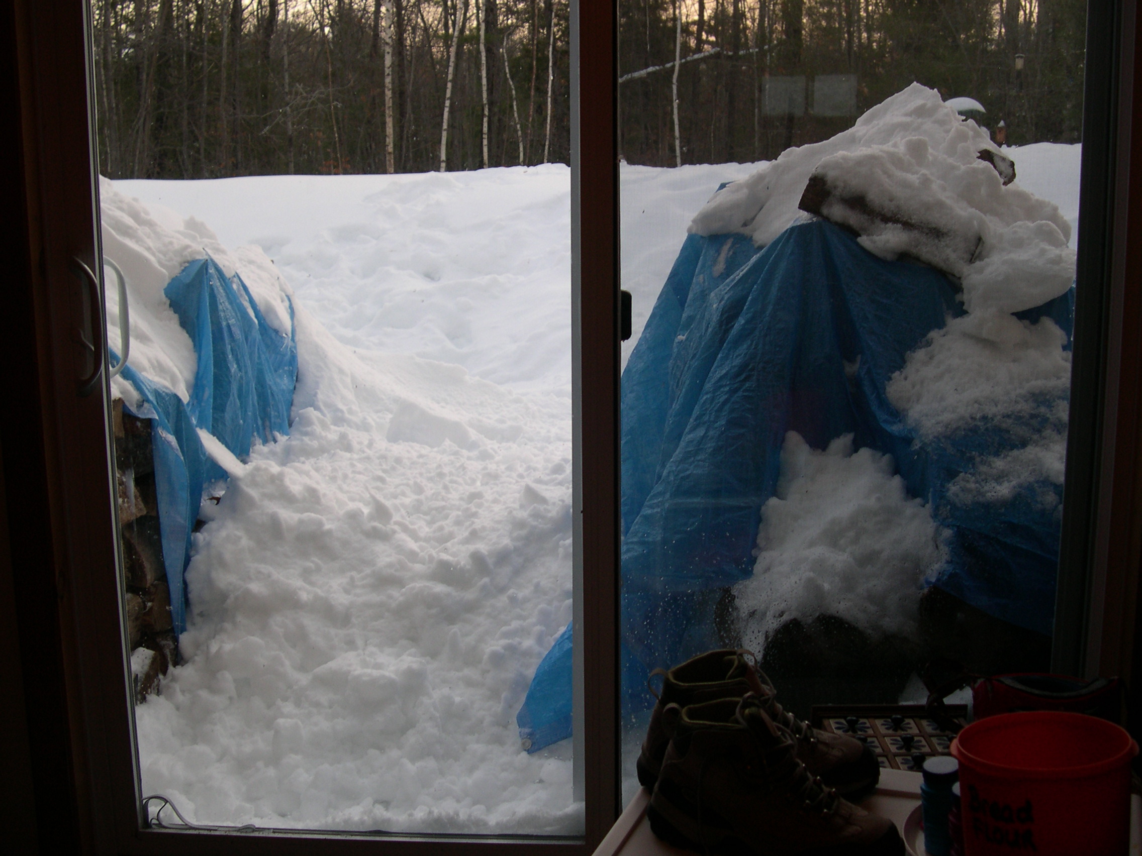 My outdoor woodpile is quite frozen and piled with snow (thanks to the snow sliding off the metal roof) but I managed to get some pieces and threw them in the back door to dry out.