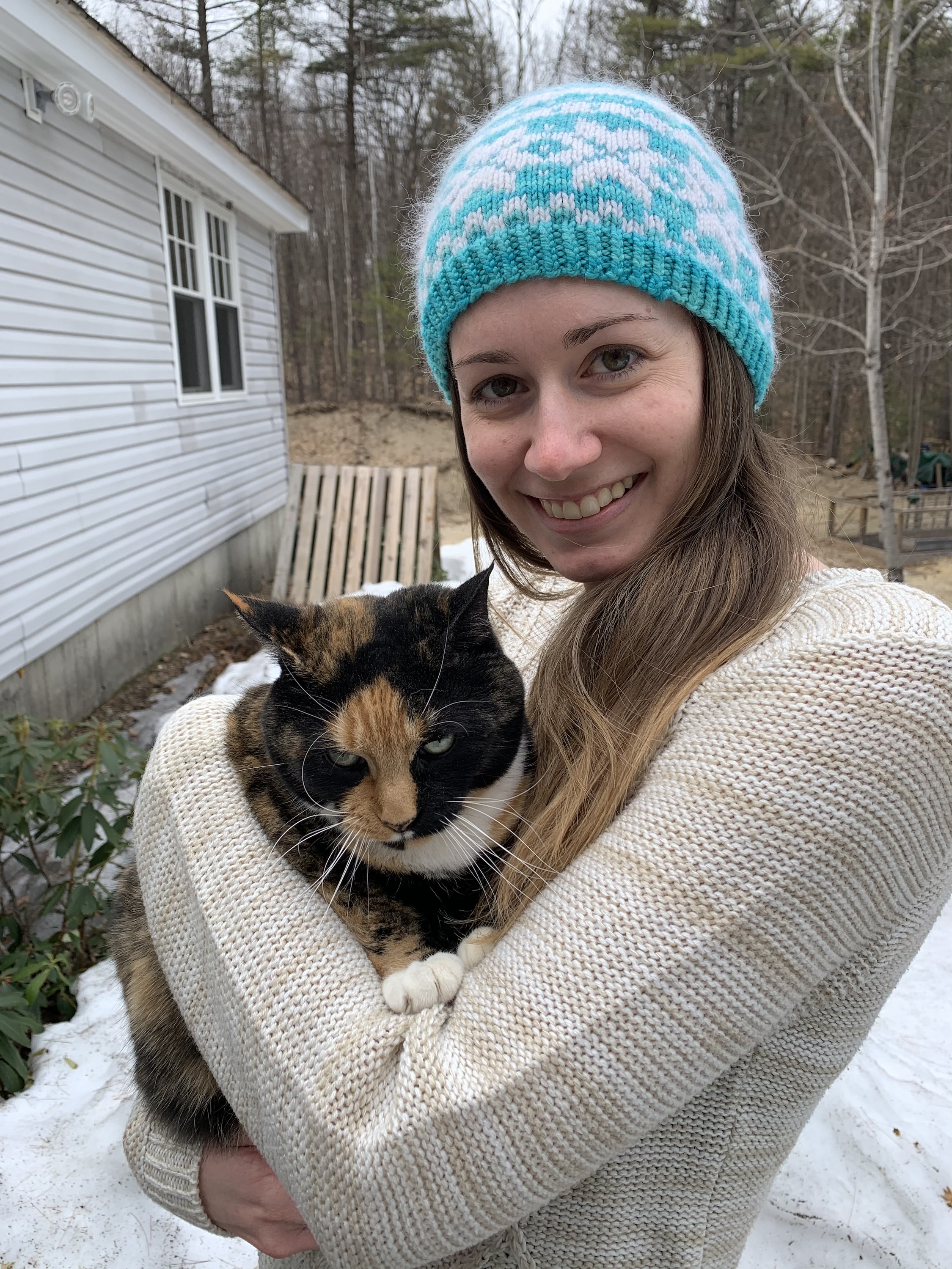 Previous Image Next Image tempImage8XZgQo Showing off my blue and white knit hat, my model stands holding her cat Share this:TweetShare on TumblrMoreLike Loading...