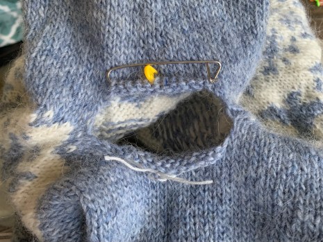 Previous Image Next Image underarm Sweater underarm stitches on hold leaving a gaping hole to be closed with Kitchener stitch Share this:TweetShare on TumblrMoreLike Loading...